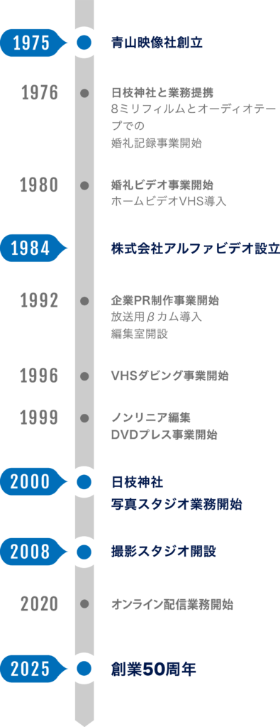 2025年、おかげさまで株式会社アルファビデオは創業50周年を迎えることができました。